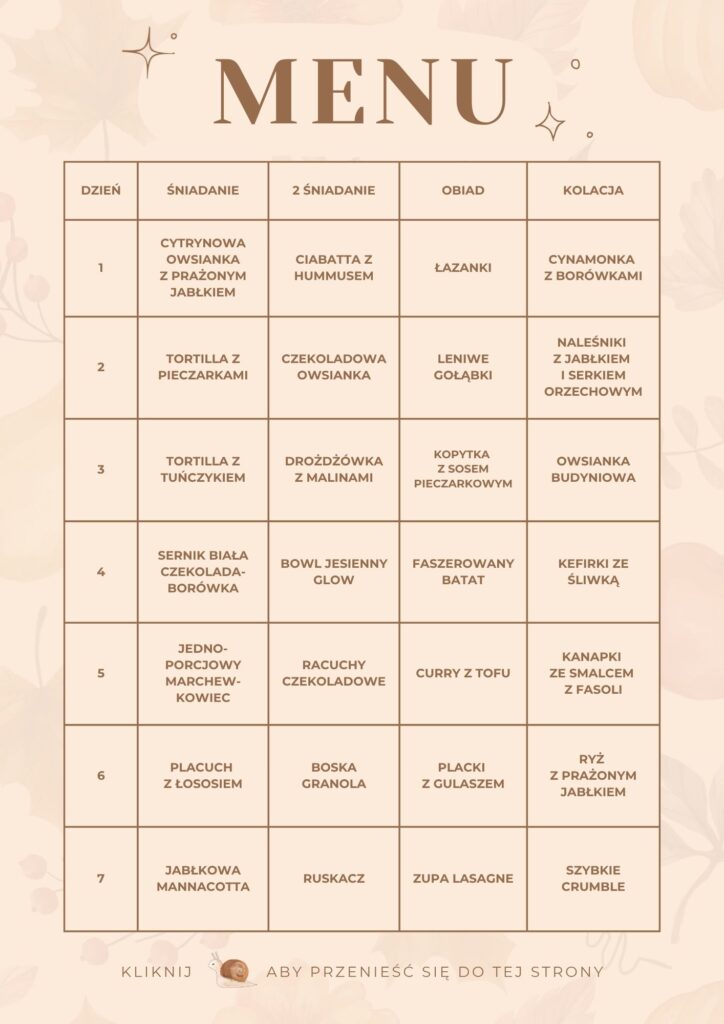 Jadłospis stworzyłam jesienią, ale będzie idealny na każdą porę roku – wiem co mówię, bo przez ostatni rok najczęściej z niego gotowałam
